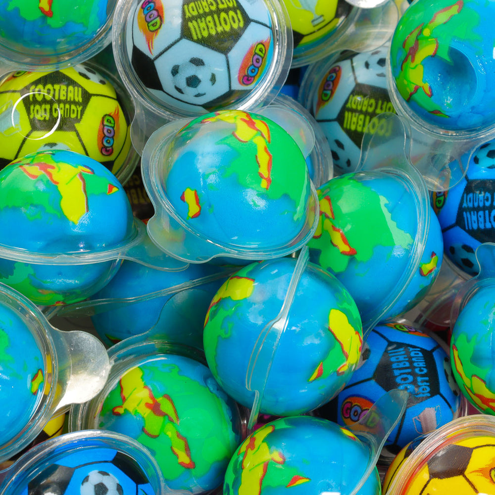 Score big with fun 3D Gummy Jar Soccer/World. 3D soccer ball and world gummies inspired by global and sporty vibes.