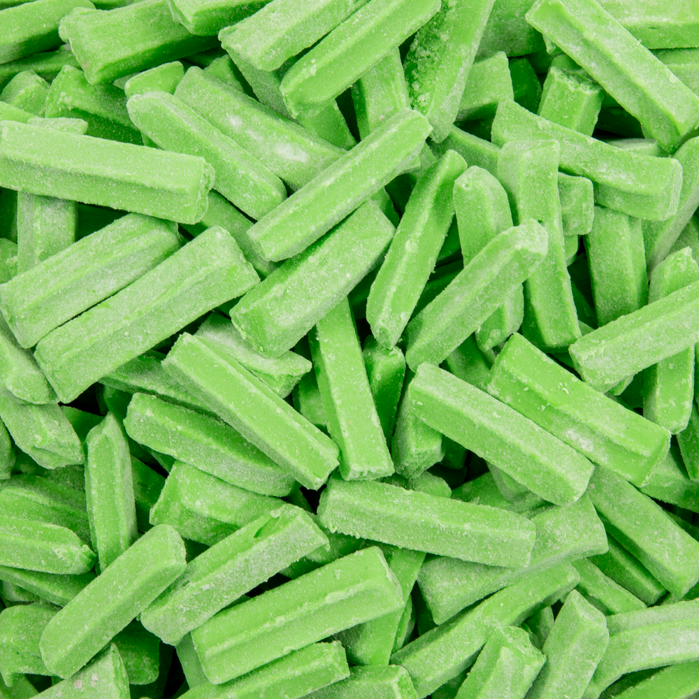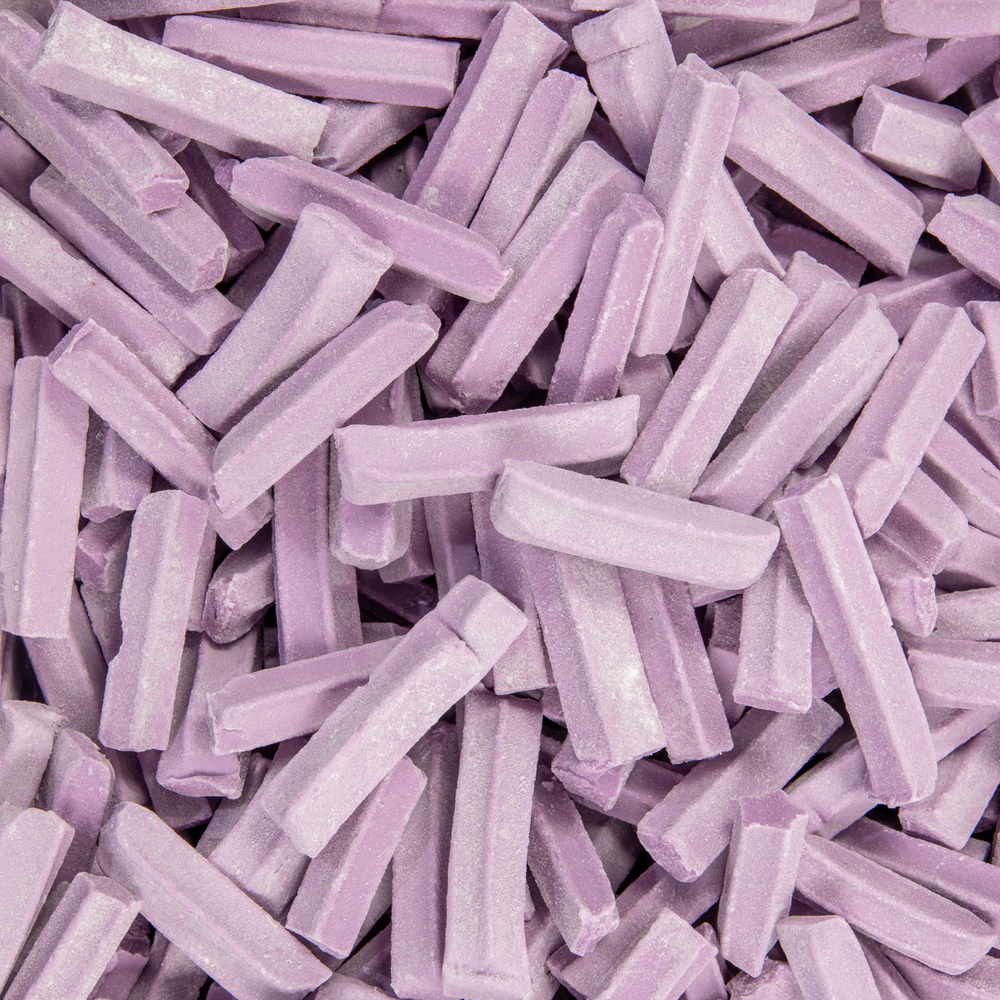 Bright, crunchy little sticks in a rainbow of flavours. Bubblegum, lime, lemon, raspberry, vanilla, grape, and mixed.