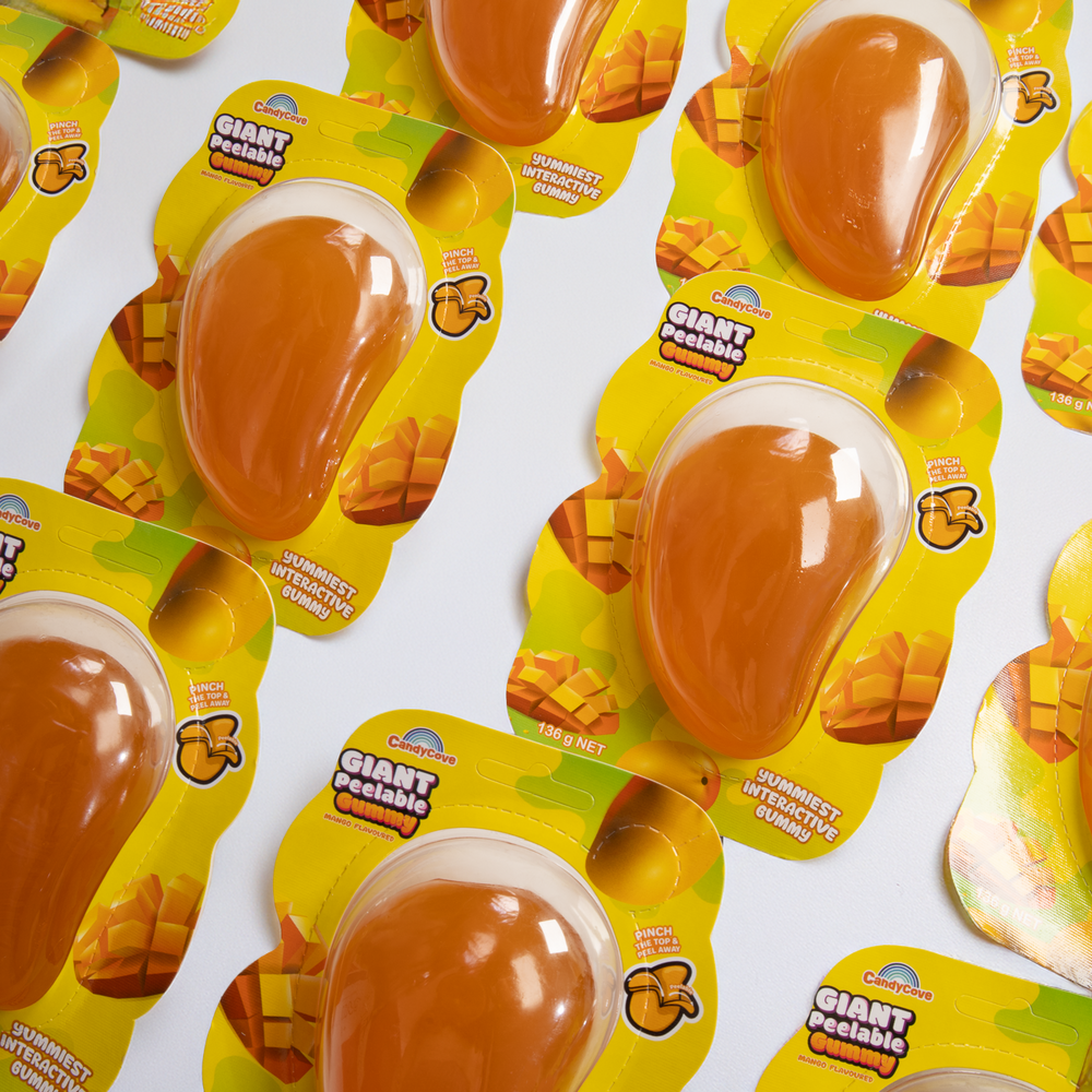This oversized gummy comes with a peelable outer layer, letting you unwrap and enjoy it just like real fruit.