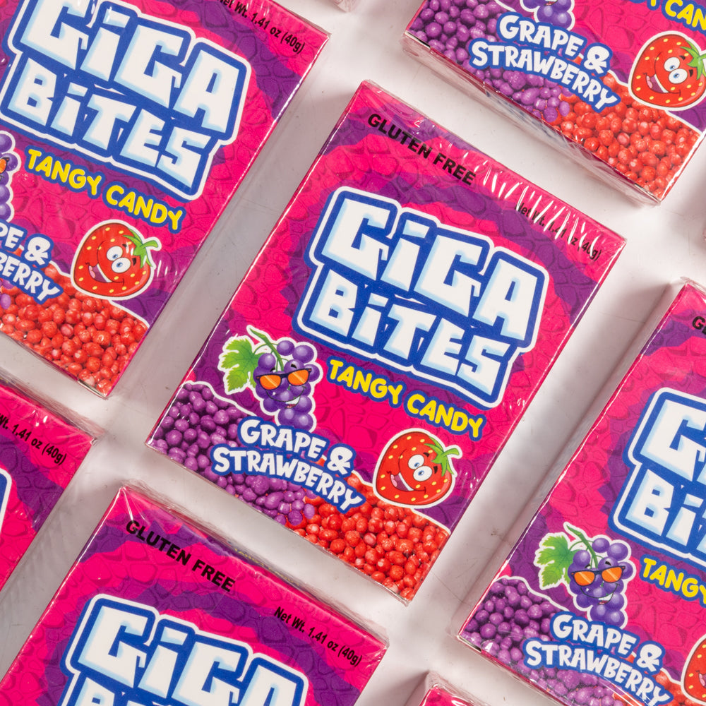 Experience a burst of playful tangy flavours with Giga Bitesβfun, vibrant treats that bring a zing reminiscent of your favourite nerds, but with their own unique twist. Perfect for those who love a little tang and a lot of fun in every bite!