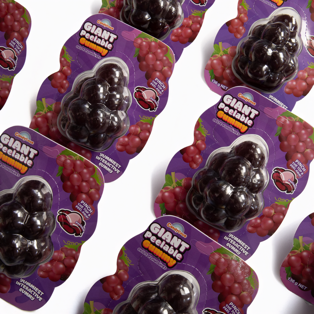This oversized gummy comes with a peelable outer layer, letting you unwrap and enjoy it just like real fruit.