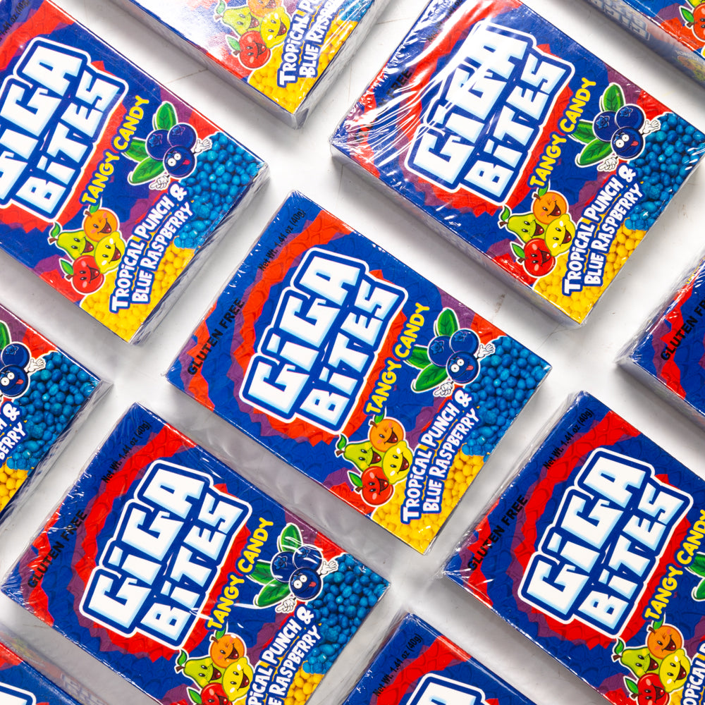 Experience a burst of playful tangy flavours with Giga Bitesβfun, vibrant treats that bring a zing reminiscent of your favourite nerds, but with their own unique twist. Perfect for those who love a little tang and a lot of fun in every bite!