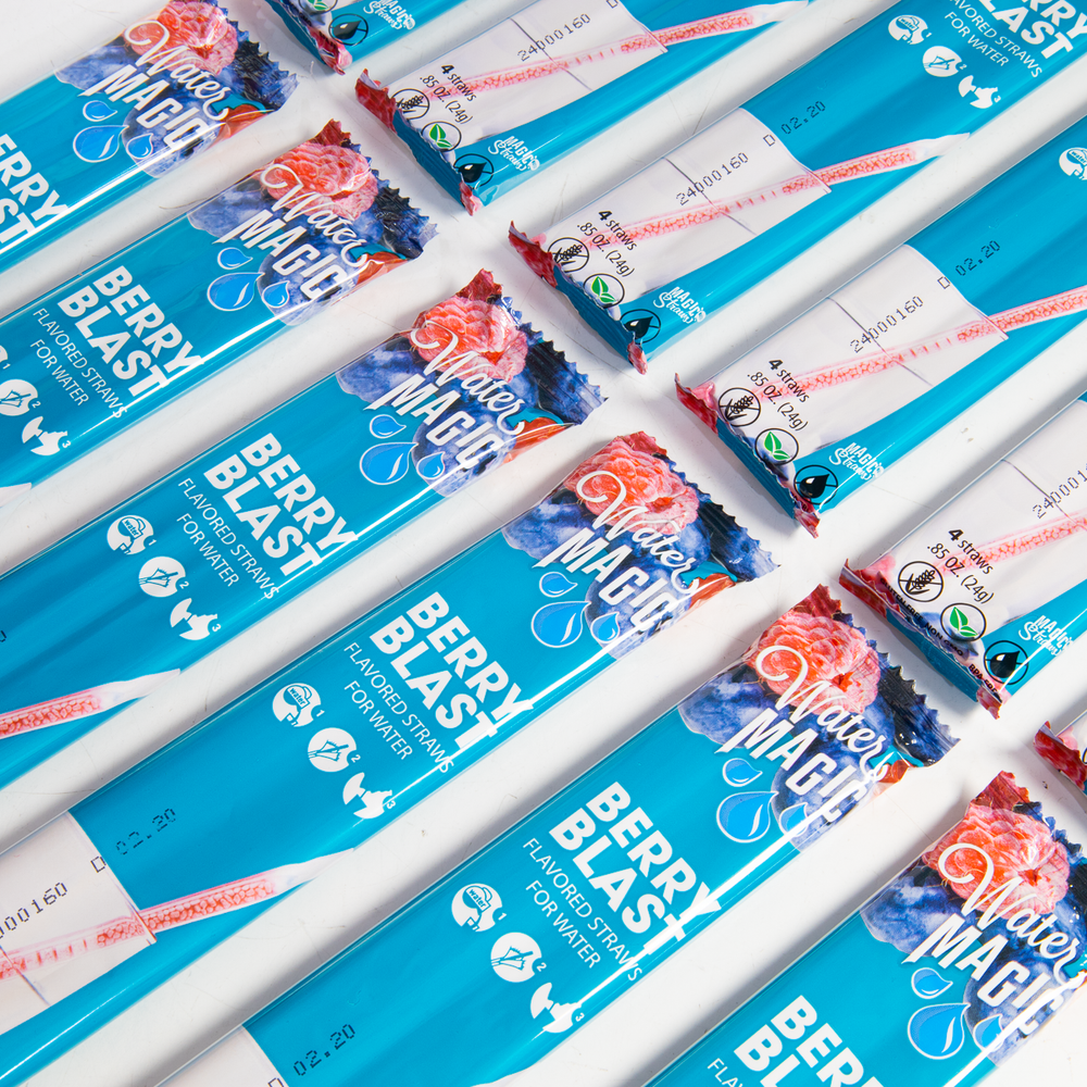 Water straws are filled with flavour beads that dissolve as you drink, adding a fruity twist to plain water.